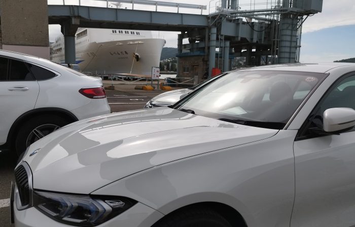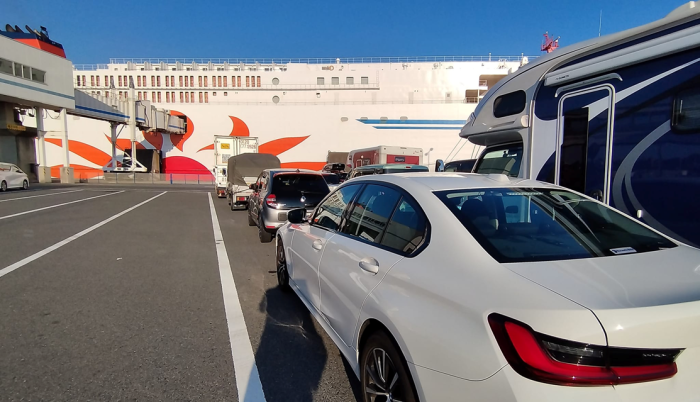 日付は7/23。まずは茨城県大洗町に到着。「さんふらわあ」に車を載せて、いざ出発!