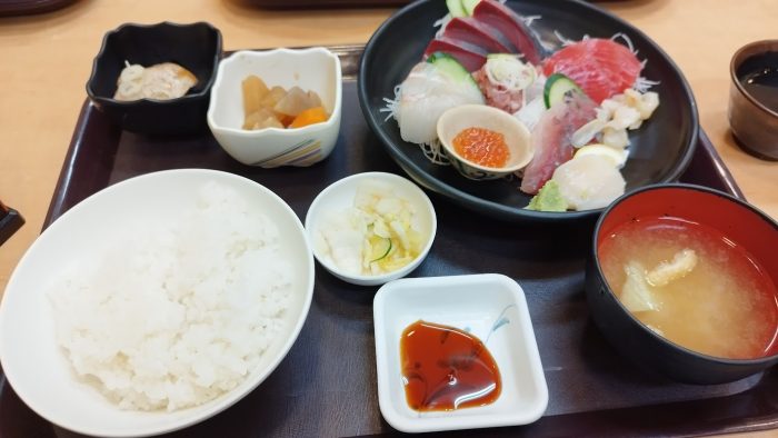 次の日、7/26の朝早くに新潟へ到着。新潟卸売市場の中央食堂で定番の特上刺身定食を。