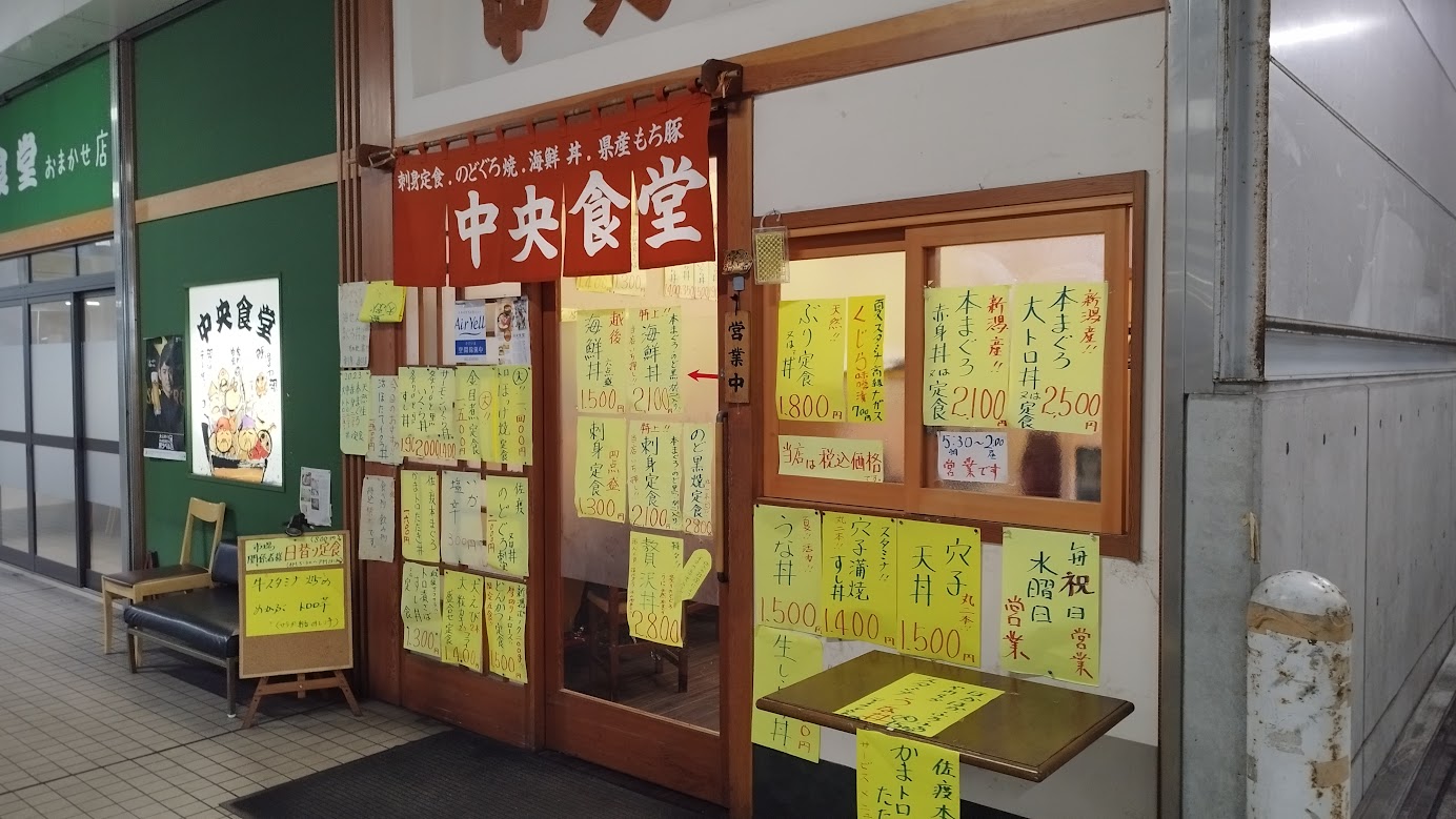 次の日、7/26の朝早くに新潟へ到着。新潟卸売市場の中央食堂で定番の特上刺身定食を。
