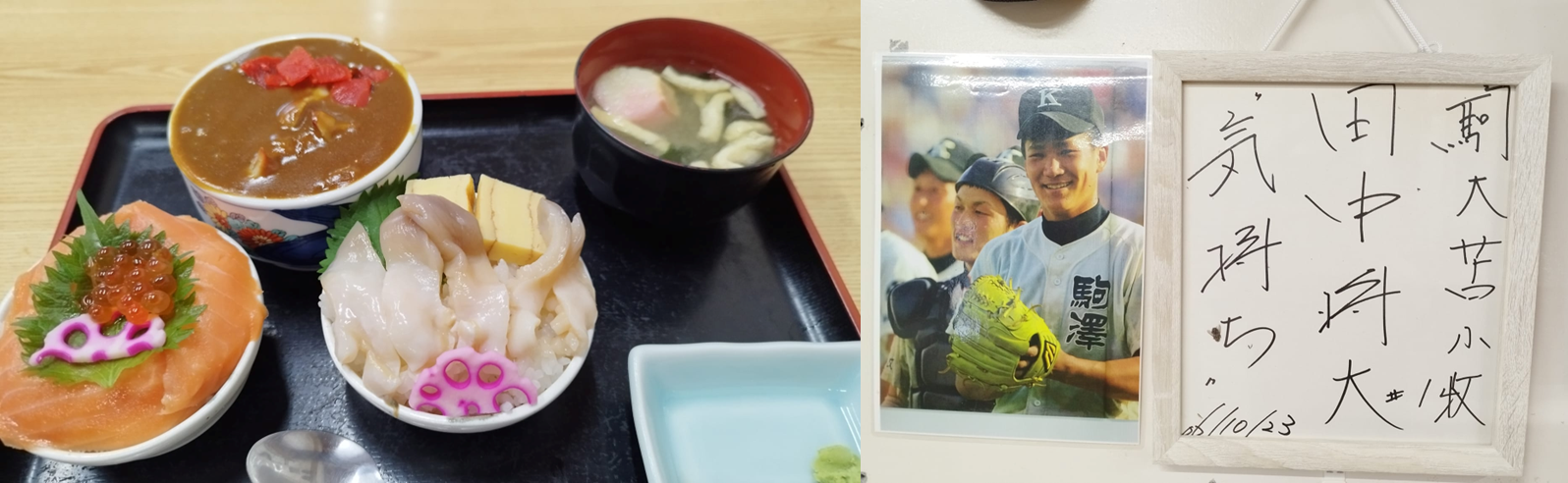苫小牧でホッキ貝を食べさせてくれる店「喰い処 弐七(にいなな)」へ。マー君の駒大苫小牧時代のサインがある。