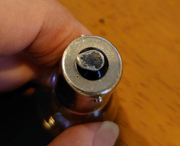 電球の端子がこんな感じで溶けたように変形。車側の接点も焦げたような感じ。