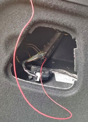 リバース時にディスプレイを後ろのカメラに切り替えるための配線。バックランプから引っ張ってくる。