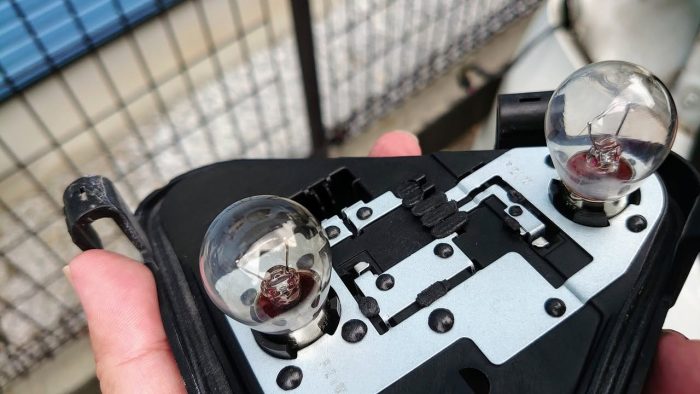 まーた、左後ろのブレーキランプ異常の警告。確かに光らない。