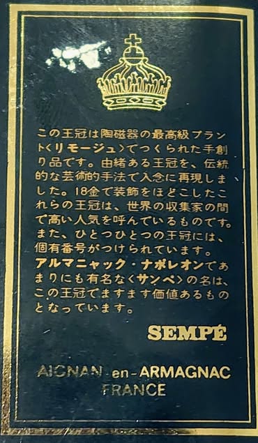 家飲み ナポレオン サンペ クラウン 投稿日:2021年8月14日 更新日:2026年2月14日 2~30年前のアルマニャックの未開封品! エラい安く手に入った。リモージュ焼きで、この金色は本当の18金なので空き瓶もそれなりに売れてしまう。 いやぁ、にしても、この香り最高だね! 何やら、こんなに凄いんだよと、色々と解説が・・・・ PREV 犬用の傘 NEXT 屋根/外壁塗装 -家飲み -アルマニャック, サンペクラウン, ナポレオン, リモージュ 執筆者:abe Twitter Facebook Google+ Pocket B!はてブ LINE
