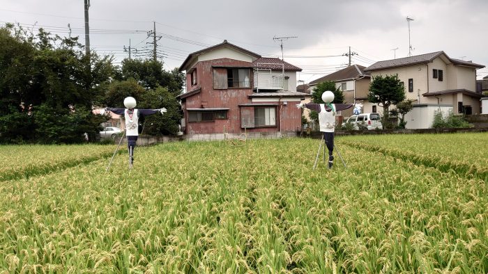 稲穂も垂れて秋も深まってきましたが、よくよく見るとオリパラ案山子が!